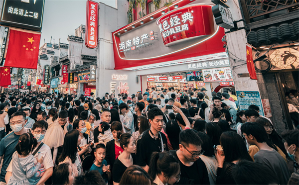 At Huangxing South Road pedestrian street, a bustling commercial section of Changsha's Tianxin district, 19-year-old Luo Cuiti bought a bowl of stinky tofu from a Hey Hey Black shop recently.