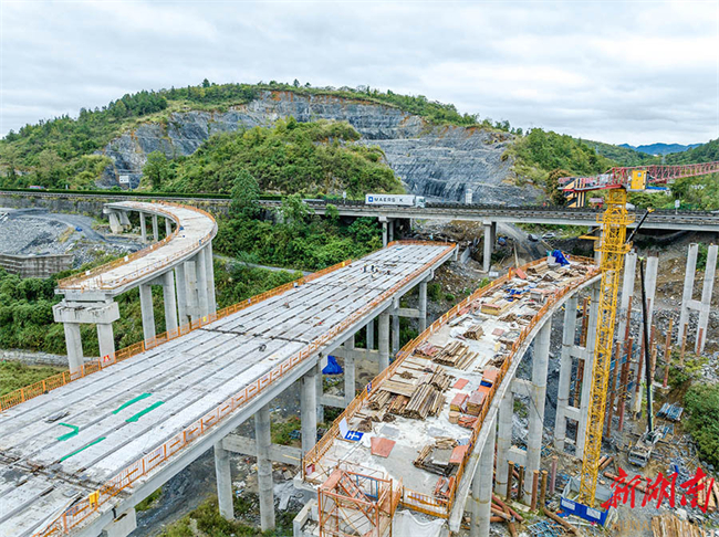 The photo, taken on October 21, shows workers hard at work on the construction site of the Jishou-Huaihua Expressway Jinping Interchange Hub in Jishou City. Upon opening to traffic, this project will significantly enhance the connectivity efficiency of the regional expressway network, improve the transportation conditions, and inject new momentum into the development of local economy. (Photo/Peng Jing)