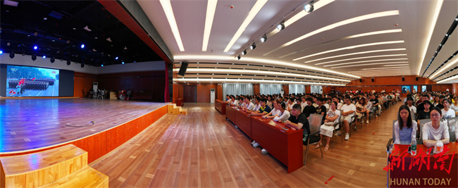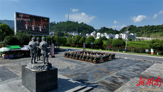 China held a massive military parade in Beijing on September 3 to mark the 80th anniversary of the victory in the Chinese People's War of Resistance Against Japanese Aggression and the World Anti-Fascist War. People around Hunan Province attached high attention to this grand event, following the ceremony through various means. The photo shows nearly 100 people, including Party members and cadres, new recruits, and villager representatives, watching the live broadcast of the V-Day military parade together at Shazhou Fok Custom Square in Rucheng County, Chenzhou. (Photo/Yuan Chaofan and Ou Zhimin)