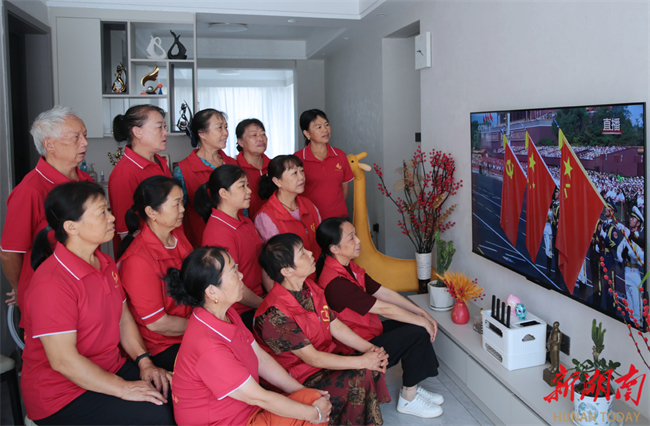 The resident work teams and village Party committee of Aikou Village, Majing'ao Town, Jishou City organize veterans, Party members, residents, and new college students to watch the V-Day military parade together on September 3. (Photo/Peng Jing and Liu Zhongwei)