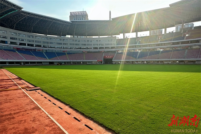 The lawn at the Changsha Helong Stadium has been renovated as of