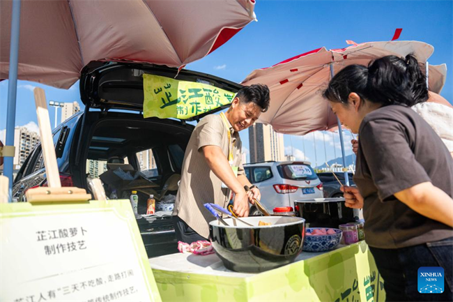 People visit the Wuxi Intangible Cultural Heritage Park in Hecheng District, Huaihua, central China's Hunan Province, Sept. 16, 2025.