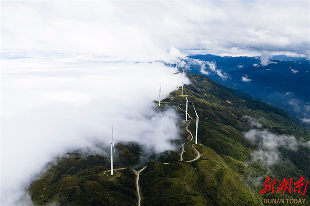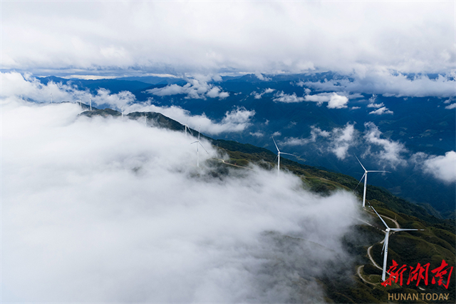 On September 21, wind turbines at the Xiangshouping Wind Farm in Tongdao Dong Autonomous County created a picturesque scene against the backdrop of lush mountains and a sea of clouds. In recent years, the county authority has vigorously developed its wind power industry, advancing green energy construction and boosting high-quality development. (Photo/Shi Menglei)