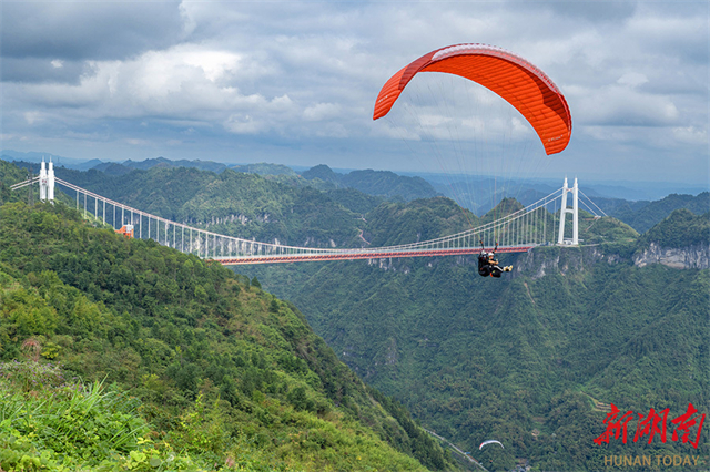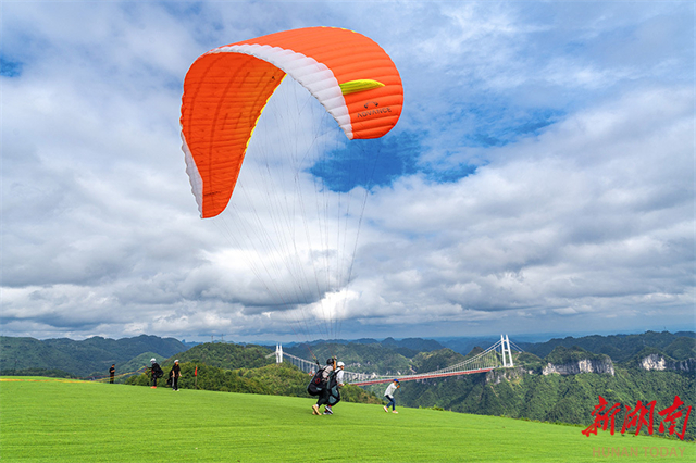 On September 27, numerous visitors came to a paragliding camp in the Aizhai Scenic Area of Jishou City, to experience the unique aerial view of the Aizhai Grand Bridge and the Miaoling Grand Canyon. The scenic area has upgraded its camp facilities and attracted tourists through live streaming and other methods, trying to drive a surge in local cultural and tourism consumption during the upcoming National Day and Mid-Autumn Festival holidays. (Photo/Liang Yonghong)