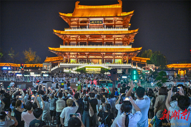 Tourists take photos of Du Fu Pavilion. (Photo/Guo Liliang, Hunan Daily)