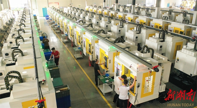 On October 9, workers bustle along the production lines at the workshop of a sci-tech company in Longhui High-Tech Industrial Development Zone. Following the end of the National Day and Mid-Autumn Festival holiday, enterprises across Longhui County have ramped up production for the fourth quarter. (Photo/Zeng Yong and Ning Qifeng)