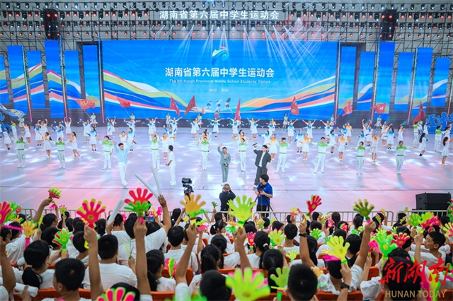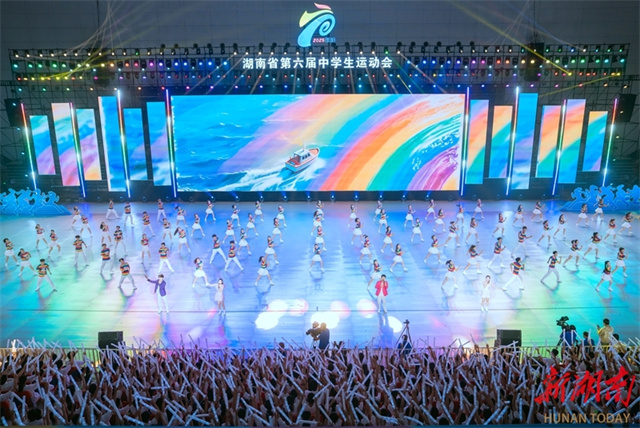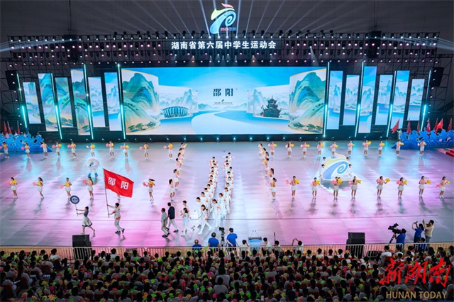 On the evening of October 16, the opening ceremony of the Sixth Hunan Provincial Middle School Students' Games was held at the Shaoyang Sports Center. Hosted by the Hunan Provincial Department of Education, the Hunan Sports Administration, and the Hunan Provincial Committee of the Communist Youth League of China (CYLC), the opening ceremony featured four chapters—"Youth," "With Me," "Chasing Dreams," and "Future." These chapters together presented a narrative of youthful growth, providing the audience with a captivating and inspiring performance. (Photo/Li Jian, Dai Peng, and Zheng Danmei, Hunan Daily)