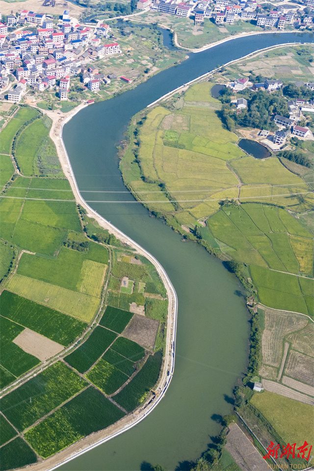 In recent years, the Lianyuan City Authority has focused on river ecological management, advancing a series of measures such as promoting ecological restoration, improving water quality, and fostering shared benefits for residents. These efforts have created an ecological environment characterized by "smooth rivers, clear waters, and beautiful scenery." The photo shows a view of clear waters and green riverbanks along the Sunshui River in Jinpen Village, Yangshi Town, Lianyuan City. (Photo/Wu Yonghua)