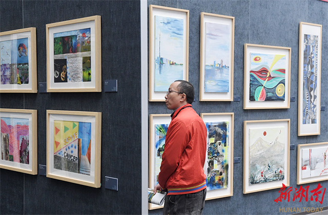 An exhibition of German female artists who successfully fought cancer opened at the Li Zijian Art Museum in Changsha on October 18. The exhibition brings together 61 works by five women artists who have overcome cancer, spanning various forms such as painting, installation, and video, showcasing their profound reflections on life in the face of illness. The exhibition will run until October 26 and is open to the public free of charge. The photo shows residents visiting the exhibition. (Photo/Xu Xing, Hunan Daily)