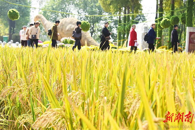 Visitors stroll around golden paddy fields in the Chengtoushan Scenic Area in Lixian County, Changde on October 23. With the ruin site where China's earliest city was discovered, the Chengtoushan Scenic Area features a combination of ancient civilization and autumn farming scenery in recent days, offering visitors a unique cultural experience. (Photo/Bai Yipu)