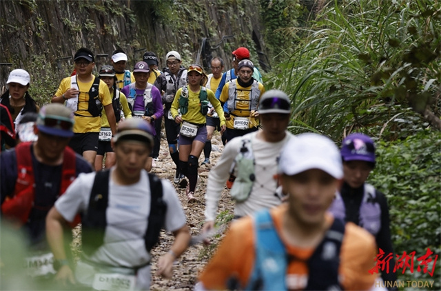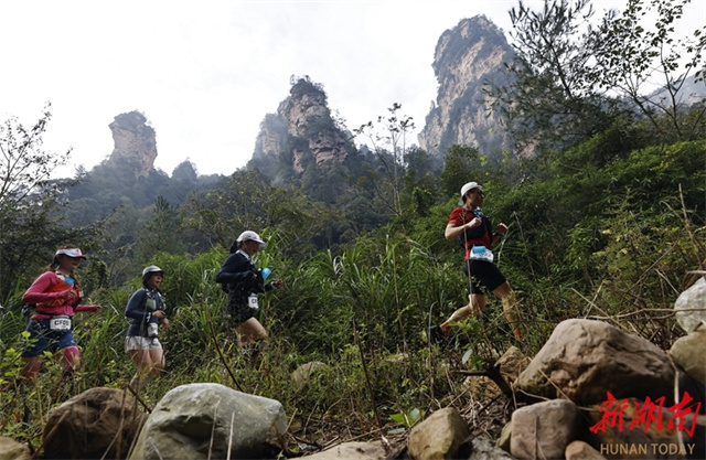 The XTERRA Zhangjiajie Wulingyuan Trail Run, part of the 2025 XTERRA Trail Run World Series, was held at the Wulingyuan District, Zhangjiajie City on October 26. The event featured five race categories: 8 km, 15 km, 30 km, 50 km, and 88 km, attracting over 2,000 trail runners from 25 countries and regions, including China, Russia, and Canada. The photo shows runners competing during the XTERRA Zhangjiajie Wulingyuan Trail Run. (Photo/Wu Yongbing)