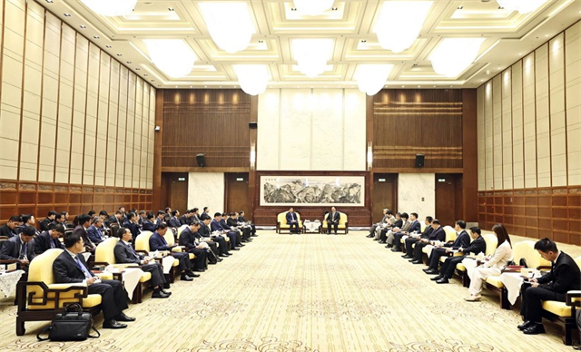 On the morning of October 27, Governor Mao welcomes CPP External Relations Commission Vice Chairperson Suos Yara and his delegation to Hunan.