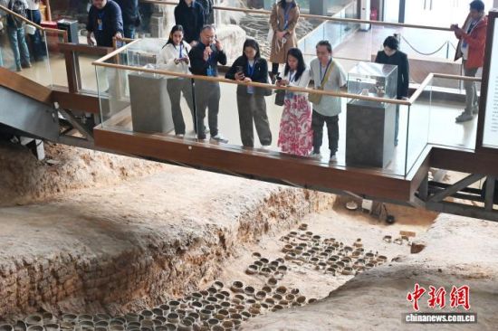 Foreign media representatives visit the Tanjiapo Site Museum. (Photo/Yang Huafeng)