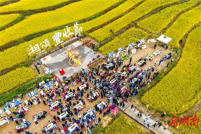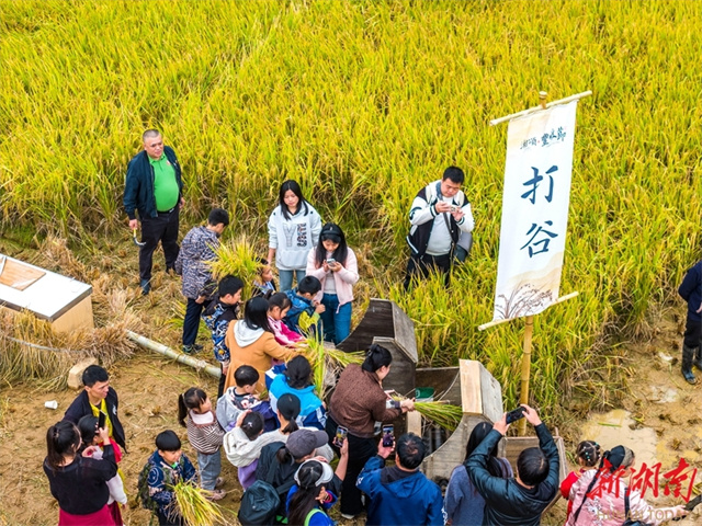 The Shanhe Village Authority hosted the Xiangsong Harvest Festival on November 1. The event featured immersive agricultural cultural experiences, including terraced field tours, fish catching in paddy fields, rice harvesting and threshing, a field banquet, and a bonfire party. (Photo/Li Jianxin)