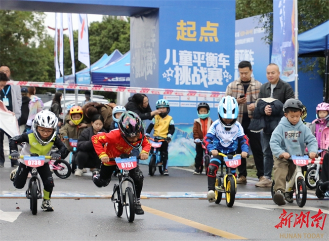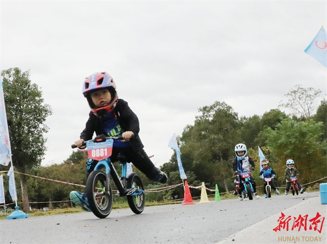 A Children's Balance Bike Challenge kicked off in Liye Town, Longshan County on November 8. This event was a part of the 6th "Exploring Beauty of Liye, Cycling on the Clouds" Cycling Race. More than 100 kids competed on a professional track in the event, fully enjoying the fun and excitement of the sport. (Photo/Yu Caihua and Hu Rongchun)