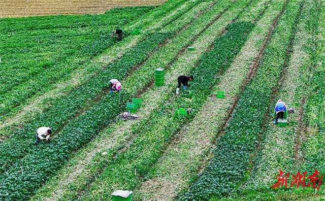 The photo, taken on November 10, shows villagers harvesting vegetables to meet market demand of the Guangdong-Hong Kong-Macao Greater Bay Area. In recent years, the local authority has leveraged its selenium-rich resources and geographical advantages to develop a vegetable supply base for the Greater Bay Area, boosting agricultural efficiency and increasing farmers' incomes. (Photo/Liu Guixiong)