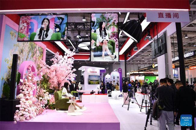 Exhibitors introduce filming devices during the 2025 China New Media Technology Exhibition in Changsha, capital of central China's Hunan Province, Nov. 12, 2025. The 2025 China New Media Conference, featuring an opening ceremony, 7 parallel forums, China New Media Technology Exhibition and 5 other events, kicked off here on Wednesday. (Xinhua/Chen Zhenhai)