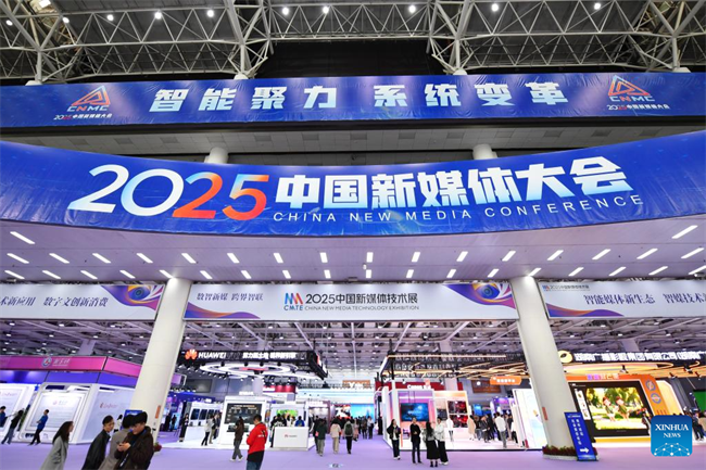 People are seen during the 2025 China New Media Technology Exhibition in Changsha, capital of central China's Hunan Province, Nov. 12, 2025. The 2025 China New Media Conference, featuring an opening ceremony, 7 parallel forums, China New Media Technology Exhibition and 5 other events, kicked off here on Wednesday. (Xinhua/Chen Zhenhai)