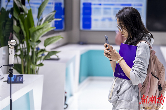 Visitors experiences an automated newspaper photography machine at the 2025 China New Media Technology Exhibition (CMTE) at the Hunan International Convention and Exhibition Center (Mango Hall) on November 13. The exhibition is ongoing in Changsha, focusing on technology empowering the media throughout its entire workflow and across all aspects. It featured three core sections—"New Ecosystem of Intelligent Media," "New Application of Smart Media Technologies," and "New Consumption of Digital Cultural Innovation." The event aims to create a platform to showcase the achievements in technological innovations empowering systematic transformation of mainstream media, and to facilitate technology transactions and industrial collaboration. (Photo/Tong Zhenxi and Liu Shiqi, Hunan Daily)