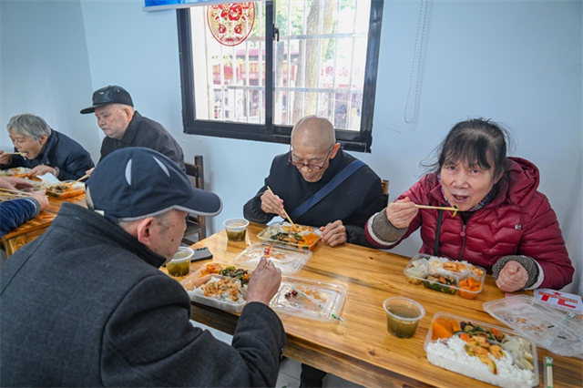 On November 18, seniors enjoy a meal together at a care center in Chengdong Community, Longyang Neighborhood, Hanshou County. (Photo/Guo Liliang and Lu Rongbing, Hunan Daily)