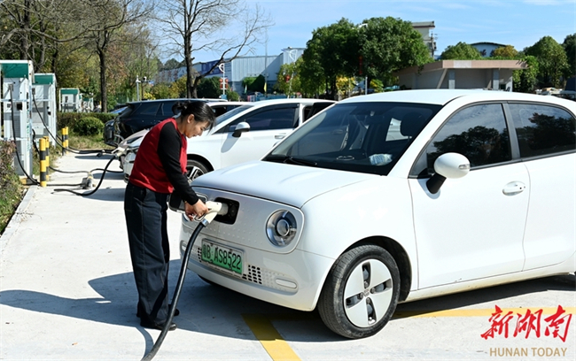 People charge new energy vehicles (NEVs) at a public charging station on Hebian Road, Huagu Neighborhood, Dongkou County on November 19. In recent years, the county authority has accelerated and enhanced the construction of new energy infrastructure. Charging stations have been built across public locations, including city streets, rural areas, scenic spots, and residential communities, forming an extensive charging network that supports green travel. (Photo/Teng Zhizhong)