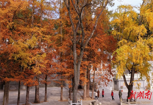 On November 19, the Hengshan Mountain Scenic Area in Hengyang City has been decorated with vibrant hues in the early winter season. The colorful foliage drapes the mountains in a dazzling tapestry, drawing crowds of tourists to admire the scenery and capture photos. (Photo/Cao Zhengping and Wen Lan)