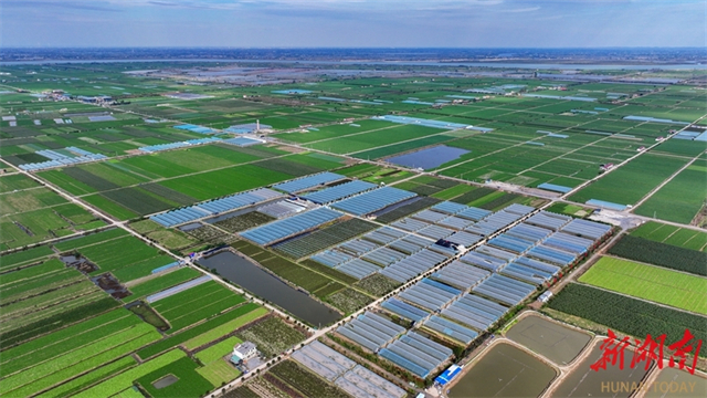 The vegetable fields and greenhouses stretch out in neat rows at Weidi Lake Vegetable Industrial Base in Hanshou County. In recent years, the county authority has further advanced the transformation and upgrading of its vegetable industry, comprehensively aligning with the Vegetable Basket Project or Non-Staple Food Project for the Guangdong-Hong Kong-Macao Greater Bay Area, to build the "Hanshou Vegetables" brand. Currently, Hanshou County maintains a year-round vegetable cultivation area of over 450,000 mu (approximately 30,000 hectares), with an annual output of 1.8 million tonnes and a comprehensive output value exceeding 7.5 billion CNY. This initiative effectively connects plantations directly to consumers, allowing vegetables to reach the market without delay and directly boosting farmers' incomes. (Photo/Guo Liliang and Lu Rongbing, Hunan Daily)