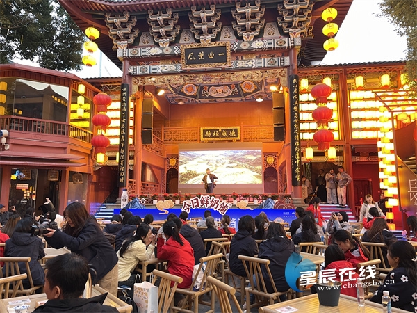 Youth representatives watch a flower-drum opera performance at the Fire God Palace Restaurant, Changsha City. (Photos/Guo Fengxiang)