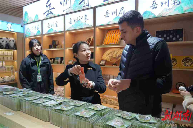 At the Intangible Cultural Heritage Craftsmanship Exhibition Hall, the guests appreciated Yuezhou paper cutting and tried their hands at creating paper-cutting works, and experienced joy of Chinese shadow puppetry. Through these up-close experiences of intangible cultural heritage, they felt the cultural charm of Yuezhou, the ancient name for Yueyang. "The exhibition hall is fantastic. Visitors can get a hands-on experience of the local culture," said the Mongolian guest.