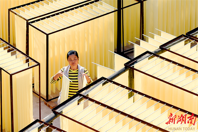 On November 23, villagers are busy drying traditional handmade noodles in Nanshi Village, Nanshi Town, Lanshan County. In recent years, the town authority has led a modernization drive, boosting over 30 noodle workshops toward mechanized production through equipment upgrading and technological innovation. These efforts have brought new life into the traditional industry and effectively increase villagers' income. (Photo/Huang Chuntao and Li Mei)