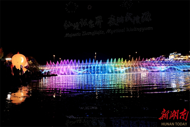 On the evening of November 25, a dazzling drone light show themed "Majestic Zhangjiajie, Mystical Wulingyuan" was held on the Suoxi River in Wulingyuan District, Zhangjiajie City. Two thousand drones flew in precise formation, sequentially projecting messages like "Welcome to Zhangjiajie," "Avatar," and "Tujia Baishou Dance." The distinctive patterns in the night sky attracted crowds of visitors. (Photo/Wu Yongbing)