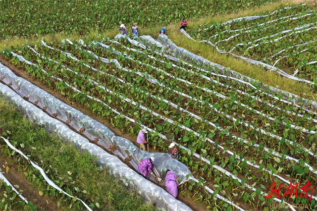 On November 26, villagers covered taro fields with mulching films in Xilingtou Village, Maojun Town, Lanshan County. Following the Xiaoxue or Minor Snow solar term, local farmers have seized the farming season to carry out film covering operations, effectively preventing frost damage and ensuring the safe overwintering of taro crops. In recent years, the county authority has adopted a "leading enterprises + cooperatives + plantations" model. Through establishing standardized plantations, optimizing varieties, and unifying technical standards, the county has developed over 30,000 mu (approximately 2,000 hectares) of scaled taro cultivation. This initiative has not only strengthened the collective economy of villages but also broadened income channels for farmers. (Photo/Huang Chuntao and Li Mei)