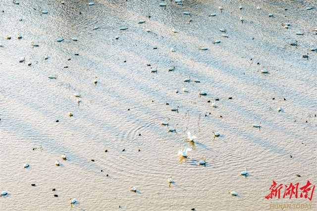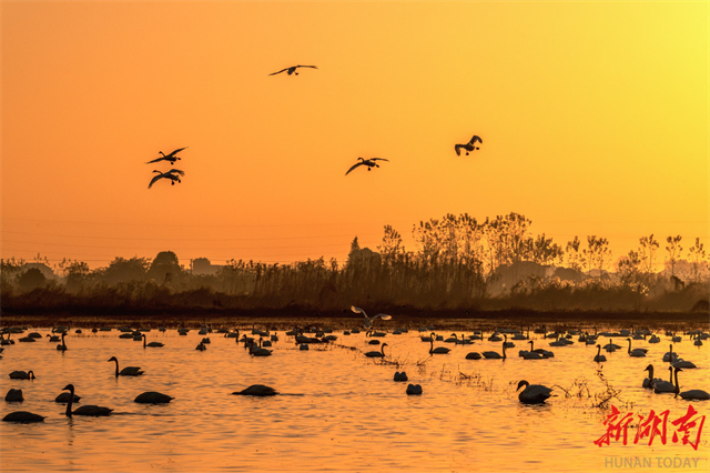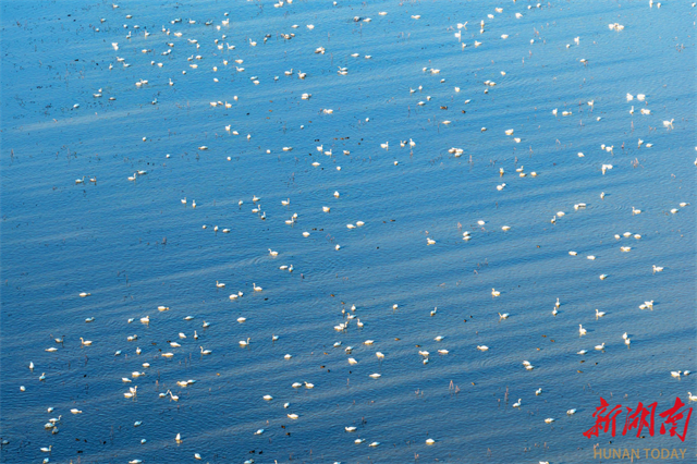 On November 25, tundra swans were seen flying, frolicking, and foraging on the Donggu Lake. As temperatures steadily dropped in winter season, approximately 3,000 Siberian swans have arrived at the Donggu Lake Wetland Park, a bird habitat in Qu Yuan Management Area, Yueyang City. In recent years, with wetland restoration projects yielding results, an increasing number of migratory birds have chosen to rest here, painting a harmonious ecological picture. (Photo/Cai Xiaoping)