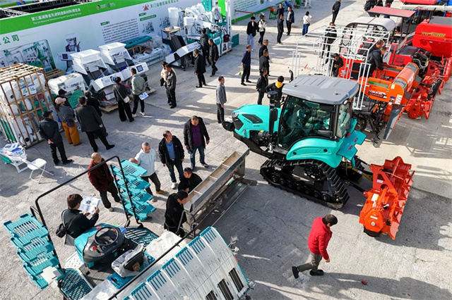 The photo shows foreign buyers discussing agricultural machinery procurement with exhibitors at the expo. (Photo/Wu Yonghua)