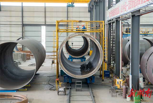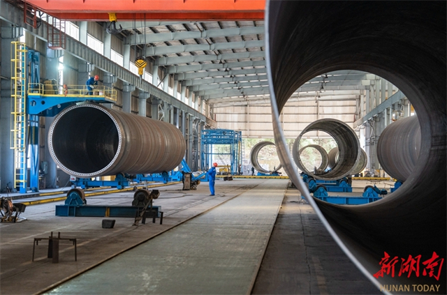 The company specializes in the R&D and production of megawatt-class wind turbine towers. Its intelligent flatness inspection equipment for large wind turbine components, developed in collaboration with universities, has successfully replaced imported equipment, injecting new momentum into the upgrading of China's high-end equipment industry. (Photo/Li Jian, Hunan Daily)