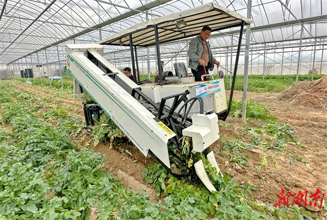 The photo above, taken on December 4, shows a mechanized white radish harvester independently developed by Hunan Agricultural University conducting harvesting operations at a vegetable greenhouse in Shashi Village, Shashi Town, Liuyang City. This marks China's first white radish harvester designed for southern regions. With a width of two meters and a length exceeding four meters, the machine features simple and flexible operation, making it adapt to small plots in southern hilly areas. Compared to traditional manual methods, a single unit achieves the efficiency equivalent to 10 workers, significantly reducing labor input. (Photo/Xu Xing and Hu Panpan, Hunan Daily)