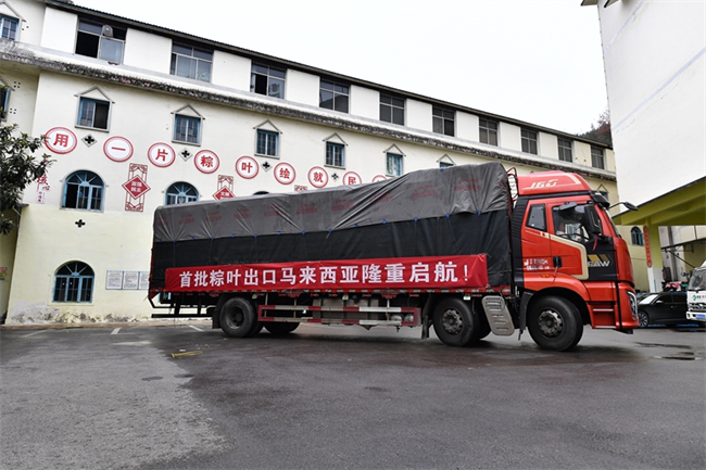 The photo, taken on December 4, shows the first batch of exported reed leaves are shipped out from Zhangjiajie to Malaysia. On that day, the company delivered 50 tonnes of high-quality reed leaves to Malaysia. This was the company's first shipment since it secured a 200-tonne order at the 2025 Malaysian International Food & Beverage Trade Fair this July. (Photo/Shao Ying and Li Han)