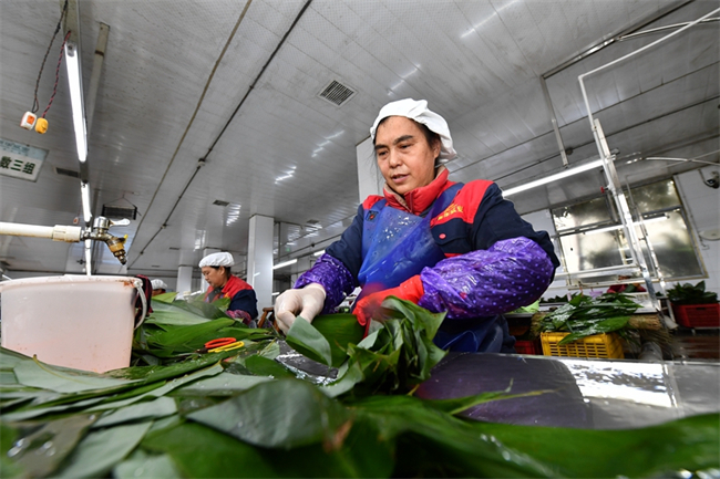 As a national-level key and leading enterprise in agricultural industrialization, the company has established a 10,000-mu (about 667 hectares) ecological plantation of reed leaves in Sangzhi County. It adopts a "company + cooperatives + plantations + farmers" operation mode, providing unified technical guidance and guaranteed purchase prices. These efforts help increase the income of thousands of farmers in the mountainous areas. (Photo/Shao Ying and Li Han)