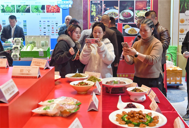 The 2025 Hunan Cuisine Grand Event, themed on healthy diet, opened in Changsha on December 8. The event continued its missions of "giving an insight of industry trends, commending industry benchmarks, and celebrating the glory moments." Diverse activities are scheduled, including industrial symposiums, brand promotions, award ceremonies, and culinary competition, sharing joy and honor with the Hunan cuisine practitioners around the world. The photo shows people visiting an exhibition of healthy ingredient of Hunan cuisine. (Photo/Xu Xing and Dai Houcun, Hunan Daily)