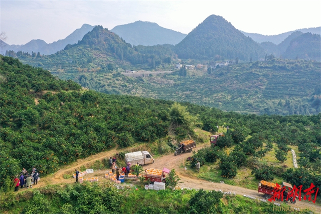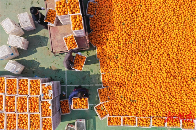 On December 7, fruit farmers were busy delivering Liye navel oranges in Bi'er Village, Liye Town, Longshan County. Taking advantage of the consecutive days of fine weather, local farmers have intensified efforts to harvest, grade, and package Liye navel oranges, ensuring the fresh, high-quality fruit reaches the market promptly. (Photo/Zeng Xianghui)