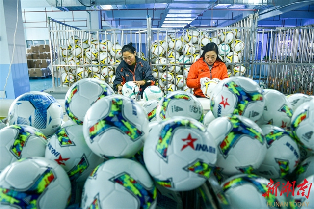 On December 9, all production lines in a workshop at a company located in the Loudi Economic and Technological Development Zone operated at full capacity as workers were busy fulfilling football orders to meet the growing demand in both domestic and international markets. The company is a renowned sporting goods manufacturer. Its products are exported to over 100 countries and regions, including the United States and Germany. (Photo/Wu Yonghua)
