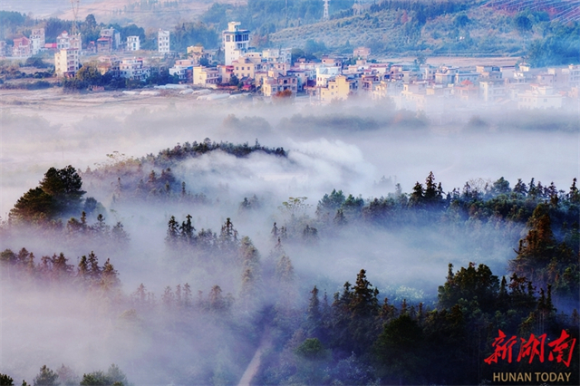 On the early morning of December 8, Jinping Town, Jiahe County was shrouded in the morning mist, transforming the mountain village into a picturesque scroll. Many areas across Hunan Province witnessed dreamlike morning misty landscapes on the same day. (Photo/Huang Chuntao)