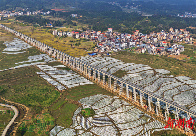 The photo above, taken on December 17, shows idyllic country fields harmoniously blending with irrigation channels and verdant mountains in Maojun Town, Lanshan County. In recent years, the county authority has embraced the philosophy that "lucid waters and lush mountains are invaluable assets." It has achieved a harmonious integration of farmland, waterways, and green mountains through environmental treatment and characteristic agricultural development. This has fostered a vibrant rural revitalization scene conducive to both living and working. (Photo/Huang Chuntao)