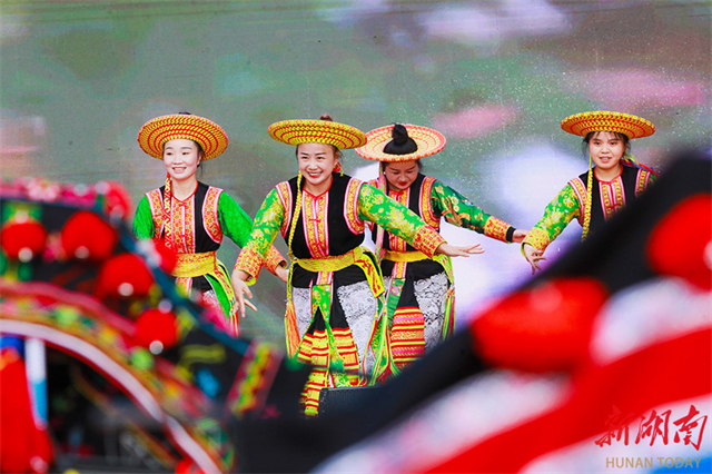 On December 17, the Yao people welcomed guests to their village. The 15th Southern Hunan Yao People "Panwang Festival" and the "Zuogetang" Intangible Cultural Heritage Exhibition were held in Daxi Village, Tangshi Town, Guiyang County on the same day. The Yao ethnic group from eight towns and townships across six counties in Chenzhou, Hengyang, and Yongzhou cities donned their traditional attire, singing and dancing to celebrate their traditional festival and pass down their ethnic culture. (Photo/Liu Guixiong and Chen Zining)