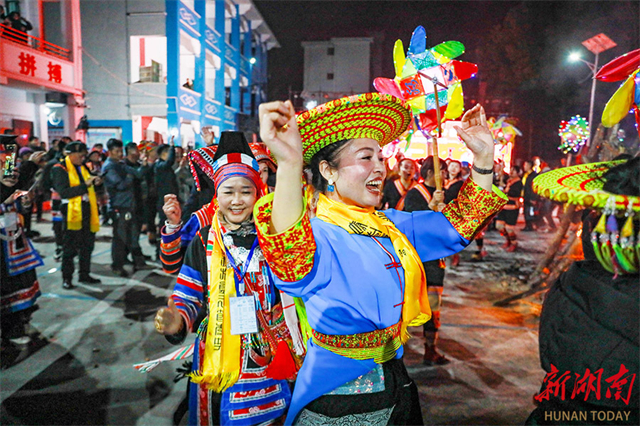 On the evening of December 17, the Yao people participated in a bonfire party. The 15th Southern Hunan Yao People "Panwang Festival" and the "Zuogetang" Intangible Cultural Heritage Exhibition were held in Daxi Village, Tangshi Town, Guiyang County on the same day. The Yao ethnic group from eight towns and townships across six counties in Chenzhou, Hengyang, and Yongzhou cities donned their traditional attire, singing and dancing to celebrate their traditional festival and pass down their ethnic culture. (Photo/Liu Guixiong and Chen Zining)