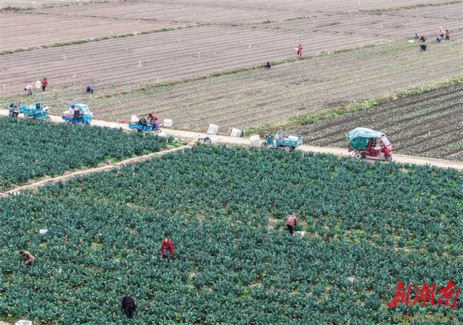 The photo, taken on December 21, shows farmers harvesting vegetables at a vegetable plantation in Shijia Village, Qingtang Town, Daoxian County. As Dongzhi solar term begins, local farmers are seizing the time to conduct seasonal farmwork such as harvesting, sowing, and crop management, creating a busy farming scene. (Photo/Jiang Keqing)