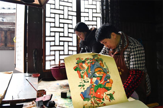 It is a tradition for Chinese people to paste New Year pictures to celebrate the Spring Festival. The Tantou-style New Year picture, with a history of more than 300 years, was listed as one of China's national intangible cultural heritages in 2006.