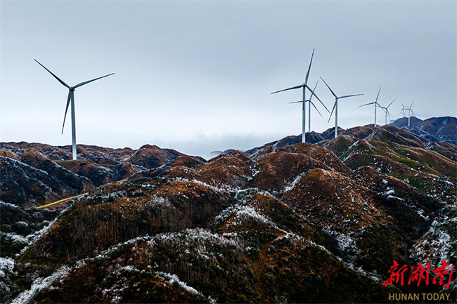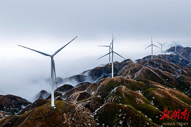 The photo shows wind turbines standing atop rolling mountains at Xiangshouping Wind Farm in Tongdao Dong Autonomous County. In recent years, the county has leveraged its alpine wind power resources to develop clean energy, achieving a win-win balance between economic benefit and ecological protection. (Photo/Shi Menglei)