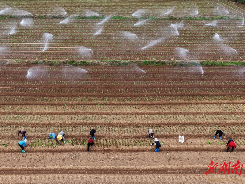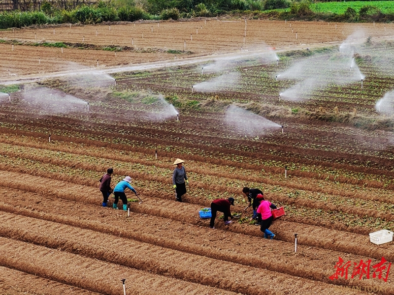 Local farmers transplant lettuce at a vegetable plantation in Xiamentou Village, Jinping Town, Jiahe County on January 4.