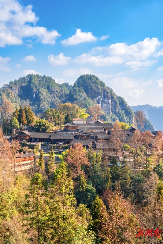 On January 6, mountains and forests display a vibrant and colorful scene around Shibadong Village, Shuanglong Town, Huayuan County, offering a stunning and captivating view and attracting many visitors. (Photo/Liang Yonghong)